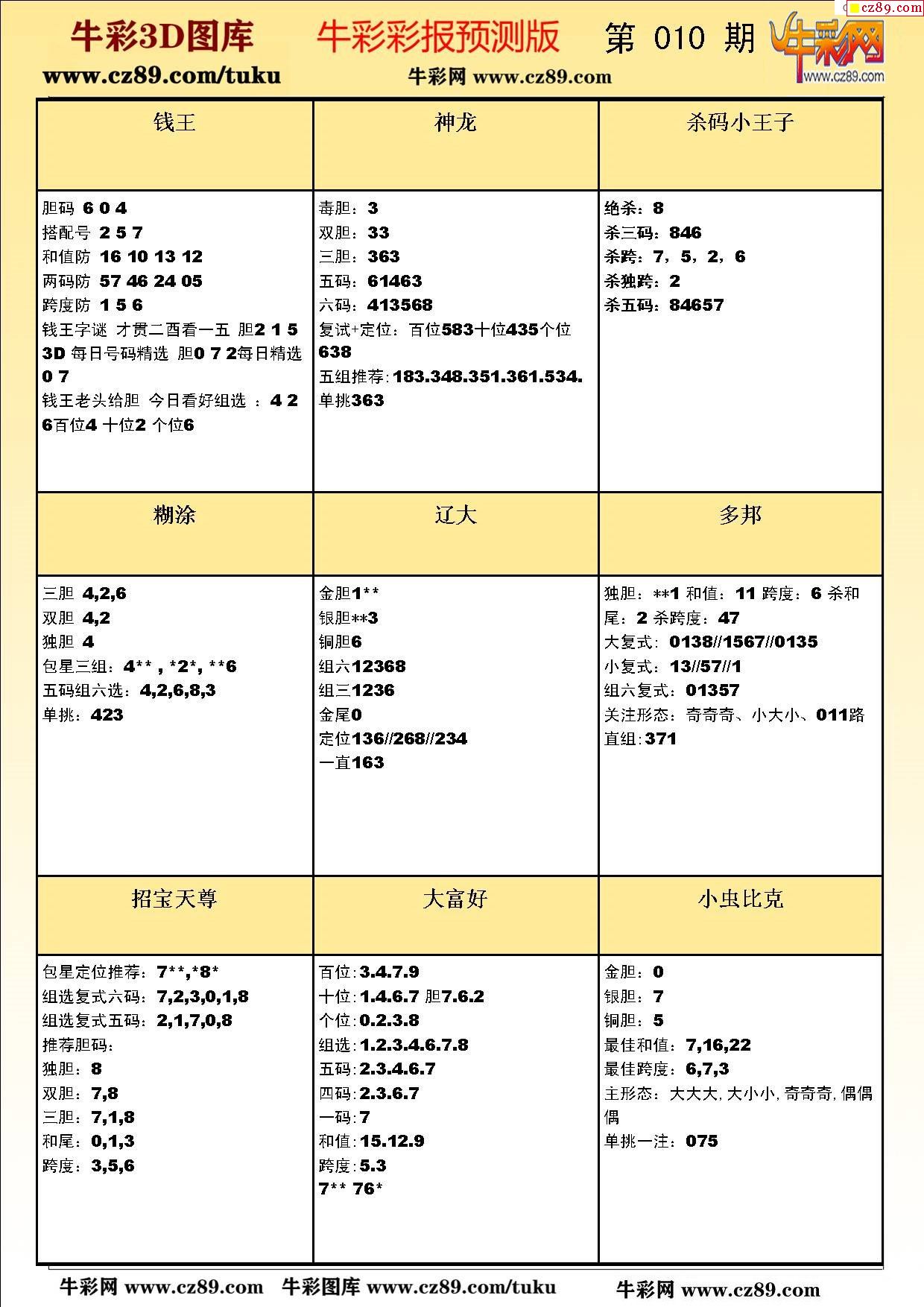 牛彩版3D预测彩报图26年010期打印版